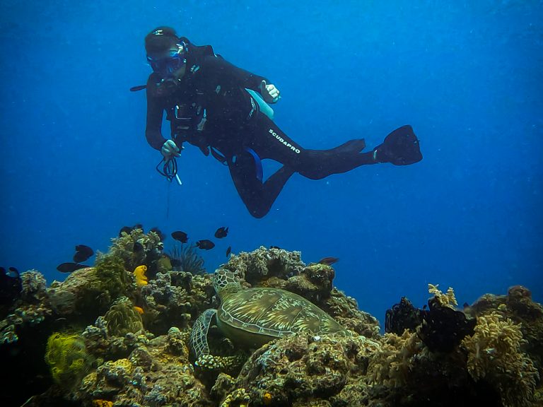 We did two full days of diving. The first day was shore dives, which were really good. It can feel like a bit of a walk out at low tide, but once you’re in the water and reach the reef, it’s well worth it. There are beautiful walls teeming with little critters and plenty of turtles cruising past.