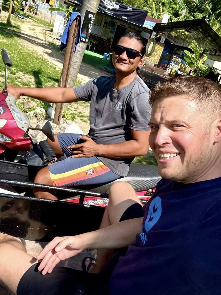 I booked with Tioman BigBrother Diver after finding them on Google and dropping a message via WhatsApp – quick replies, friendly tone, and all the info I needed to get sorted before we even reached the island. If you’re planning to do scuba diving at Tioman Island, they make the whole thing easy. The dive shop is along the main road in Tekek, just a short stroll from the beach. It’s got a relaxed, no-fuss vibe – and the morning motorbike and sidecar ride down to the boat is worth the visit alone!